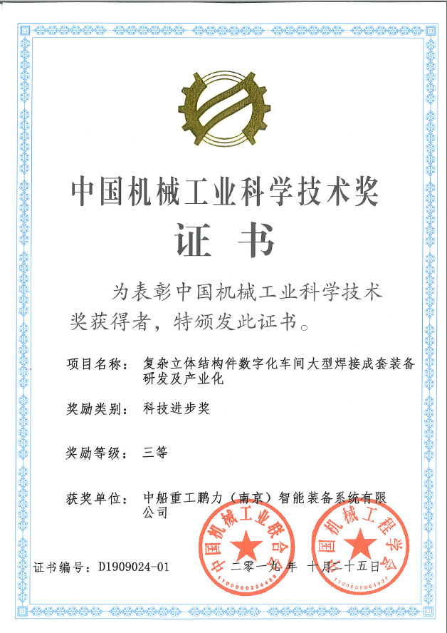 鹏力智造荣获中国机械工业科学技术奖三等奖